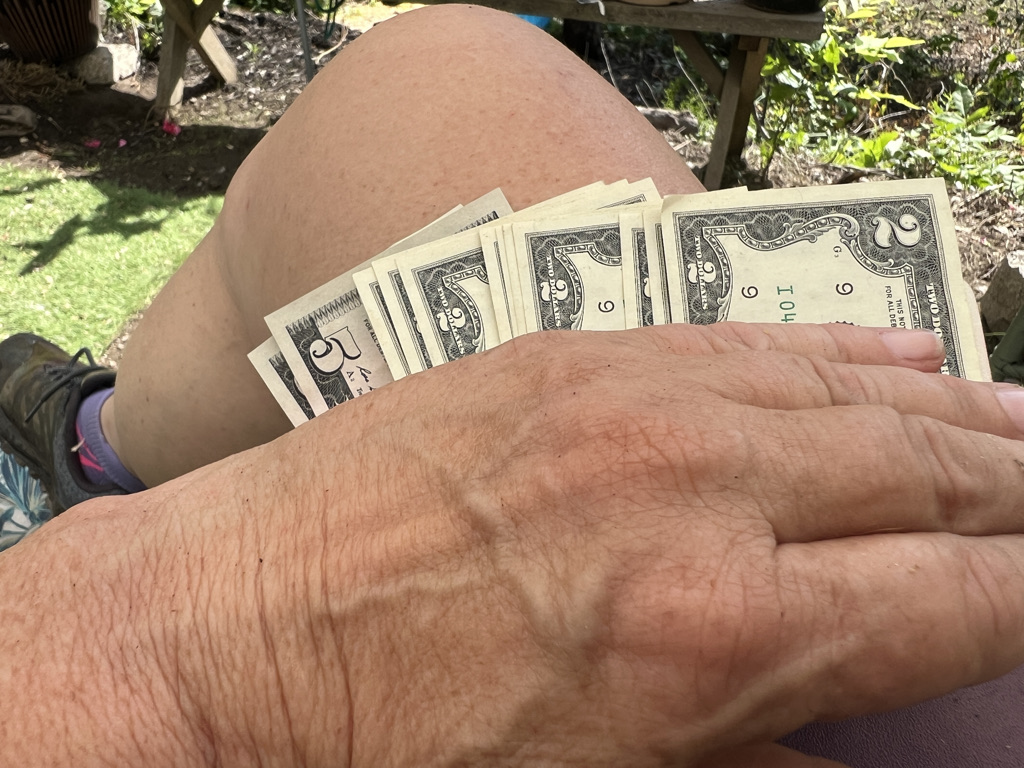 After Kyle ripped a wall down in my bathroom, I found an envelope filled with money! $30 not pennies! ha ha ha